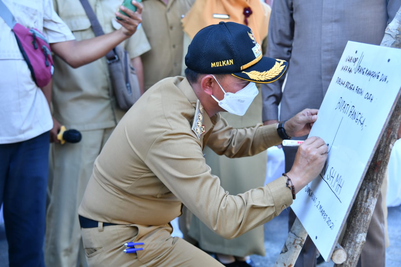 SUNGAILIAT, KABARBABEL.COM – Bupati Bangka, Mulkan SH MH, meresmikan warung makan dan kopi ‘Urang Kampong Due’, Selasa (02/03/2021) di halaman kolam renang Loka Tirta Sungailiat. Prosesi peresmian ditandai dengan pengguntingan pita serta penandatanganan prasasti oleh bupati.