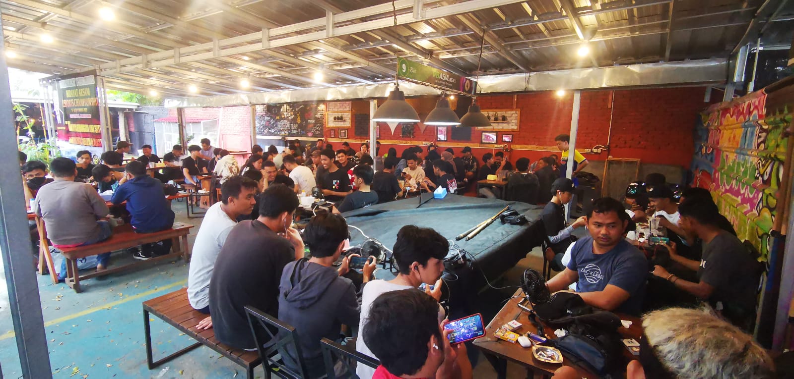 PANGKALPINANG, KABARBABEL.COM – Ratusan gamer dari kalangan milenial mengikuti turnamen PUBG Mobile Hidayat Arsani eSport Championship di Kafe Temu Kopi Pangkalpinang, Provinsi Kepulauan Bangka Belitung, Minggu (11/9/2022).