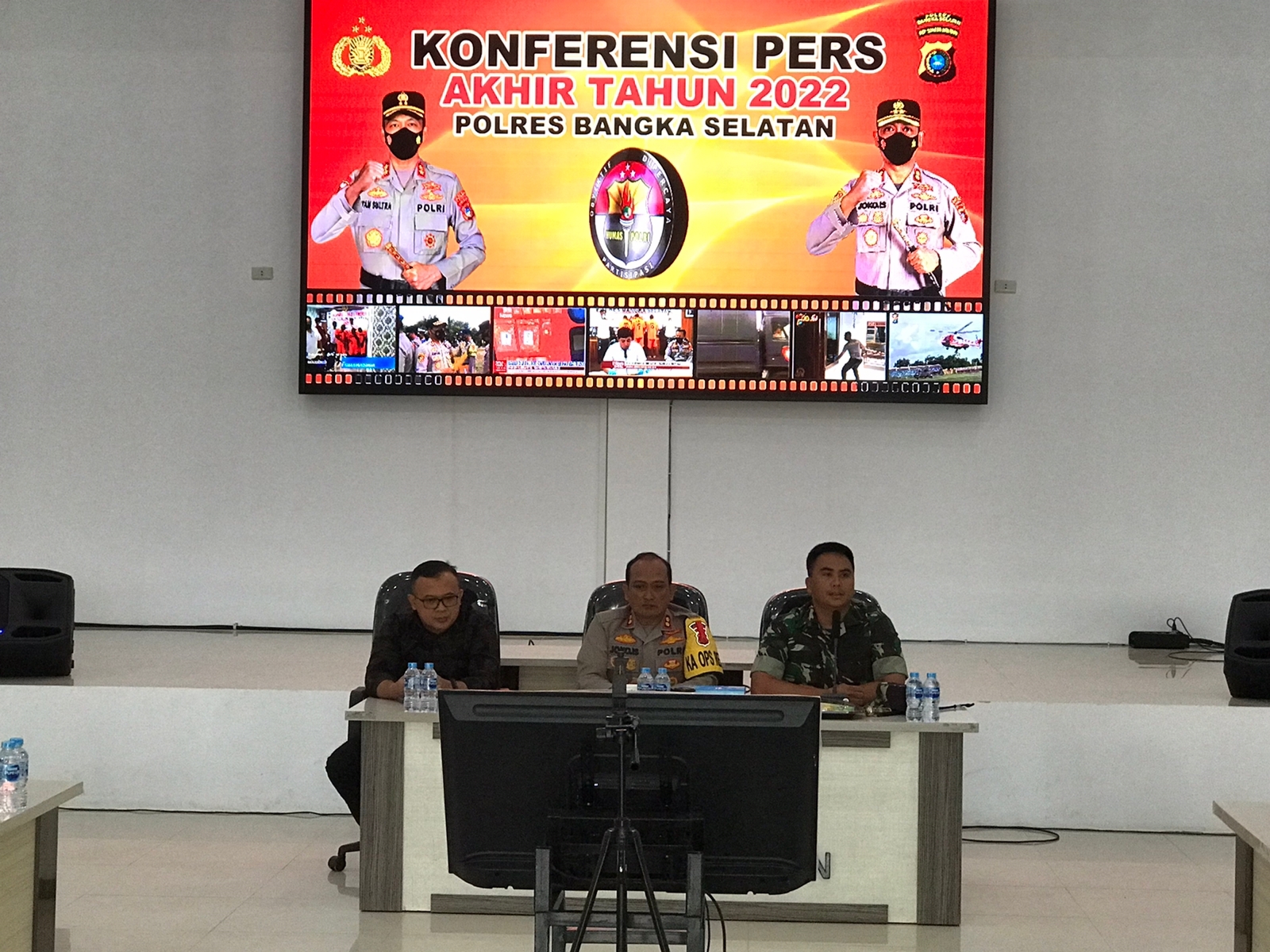 Hal ini terungkap saat Kapolres Basel AKBP Joko Isnawan memimpin kegiatan konferensi pers akhir tahun pada Kamis (29/12/2022) kemarin. Ikut hadir pada kesempatan Dandim 0432 Basel Letkol Inf Gani Rahman dan Kabag Hukum Pemkab Basel Ami Prionggo dan tamu undangan lainnya.