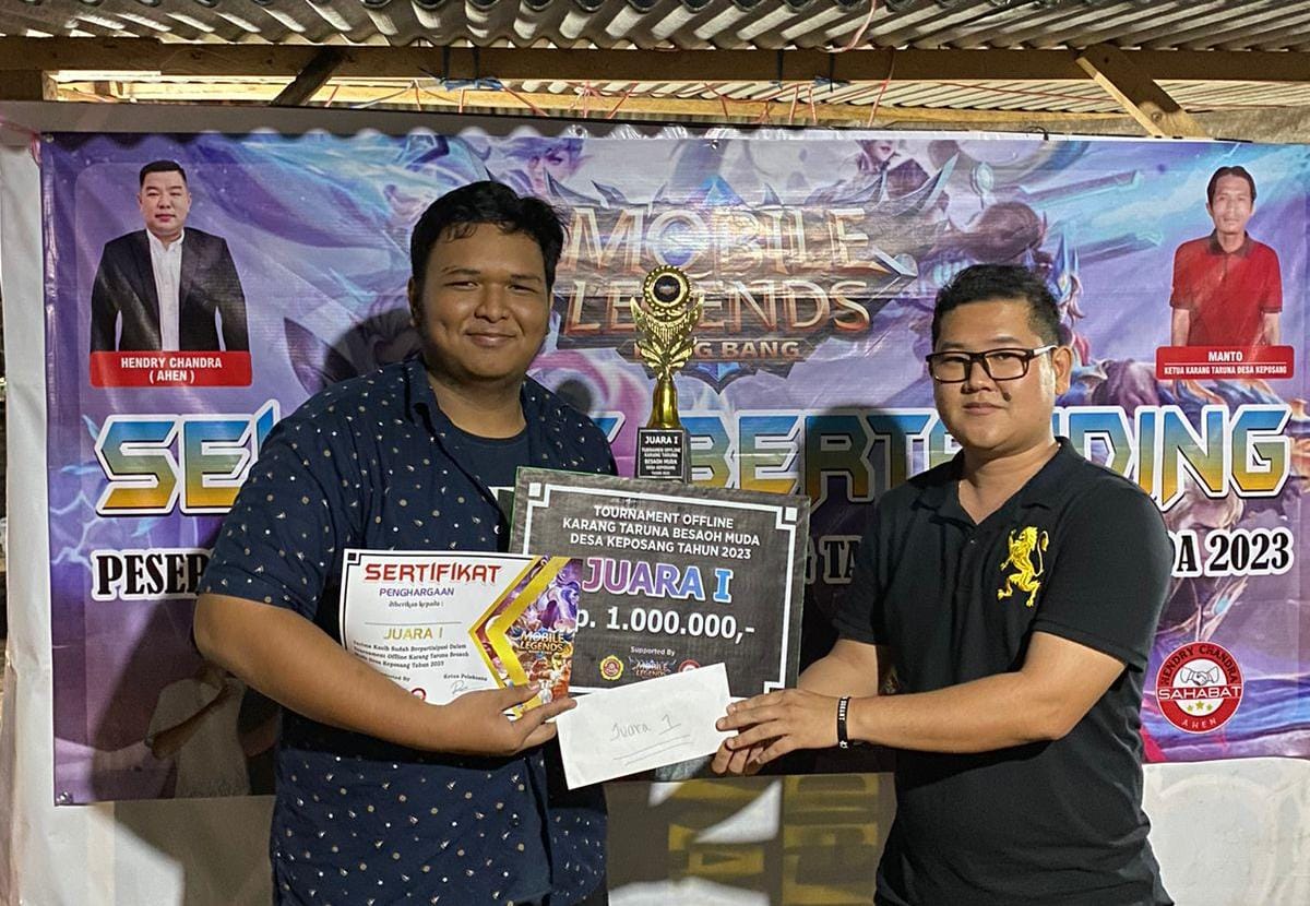TOBOALI, KABARBABEL.COM – Tim NV (Not Villains) berhasil menjuarai turnamen Mobile Legends Bang-bang (MLBB) di Desa Keposang, Kecamatan Toboali, Kabupaten Bangka Selatan (Basel) usai mengalahkan Anak Kolong dengan skor kemenangan 2-0 telak pada Sabtu (8/4) malam kemarin.