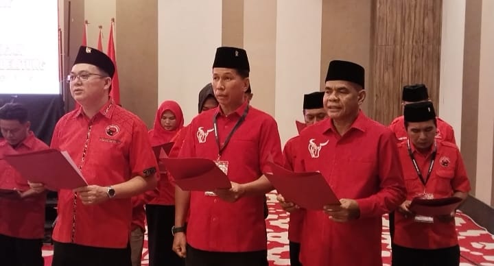 Prosesi pelantikan sekaligus momentum konsolidasi dan komitmen bersama untuk memperkuat barisan partai di Bumi Sejiran Setason itu dipimpin langsung Ketua Bidang Reformasi Sistem Hukum dan HAM DPP PDI Perjuangan, Yasonna Laoly.